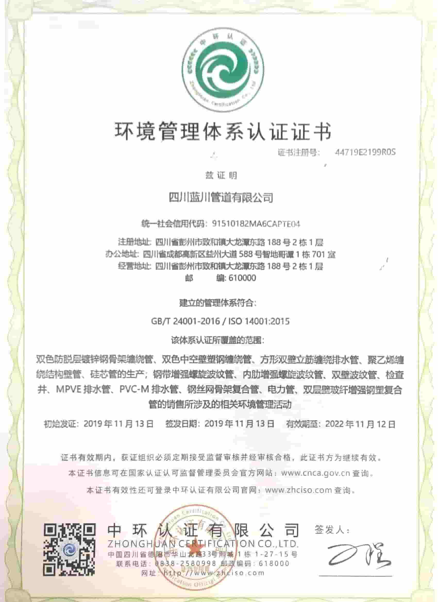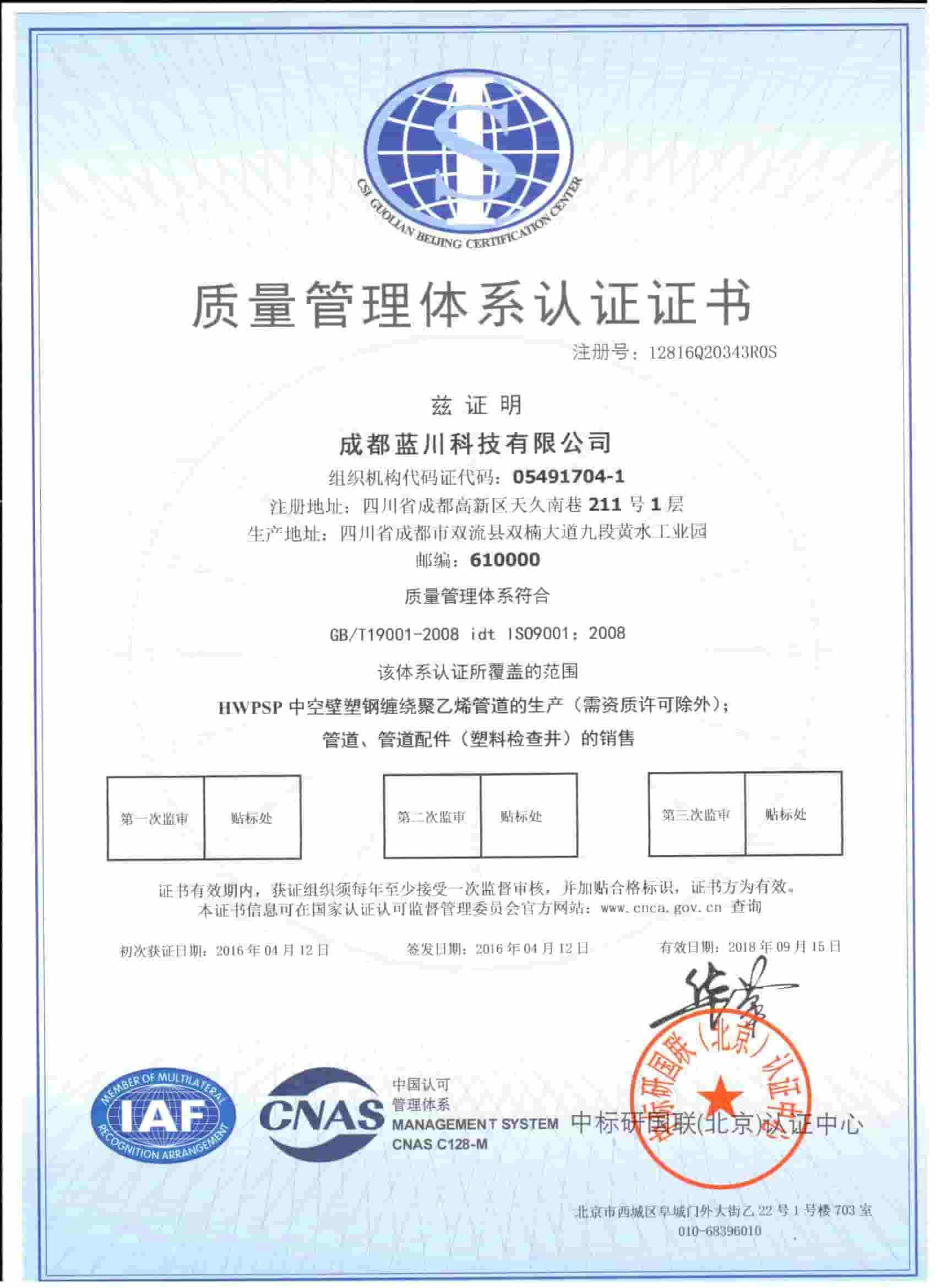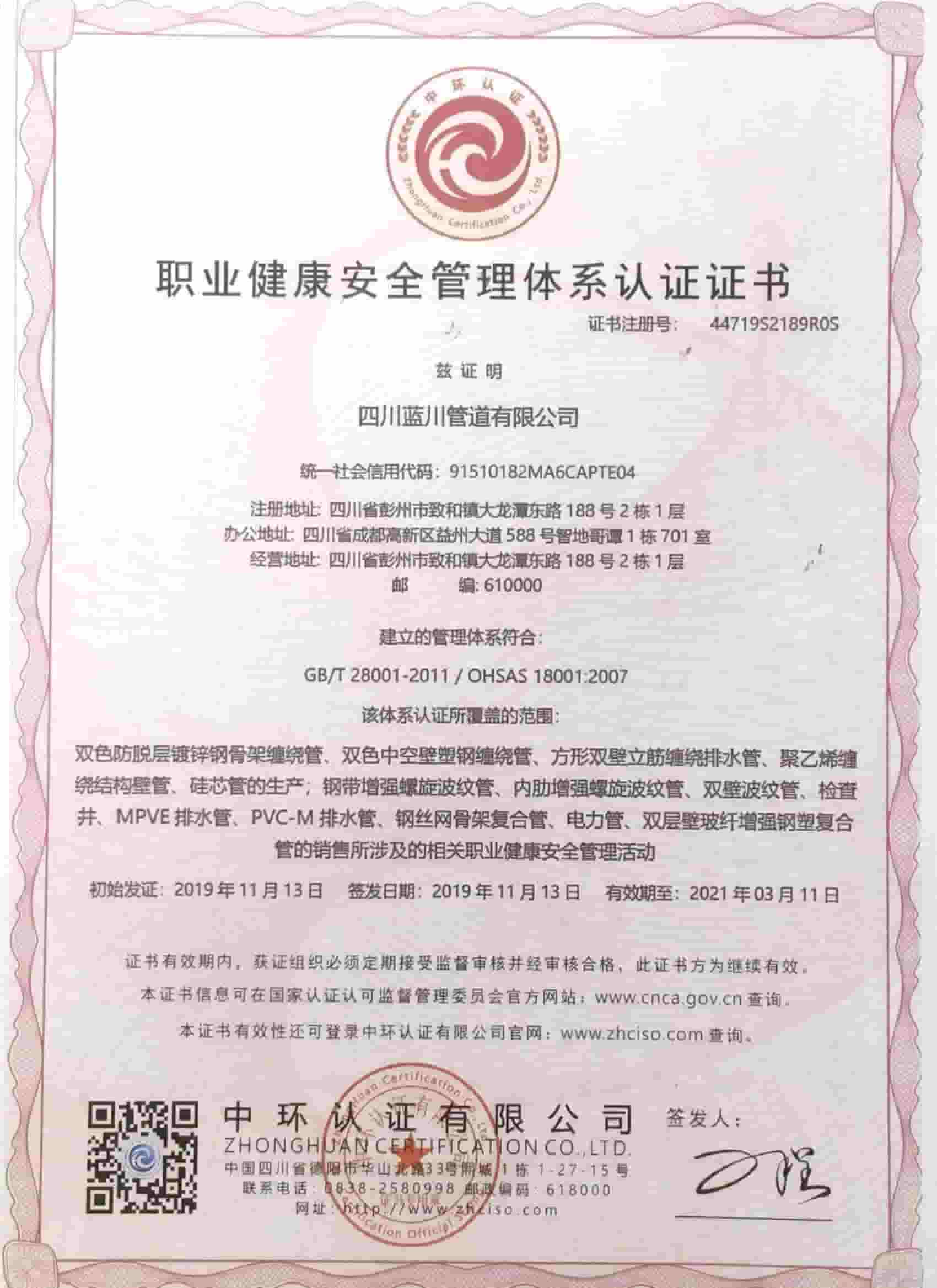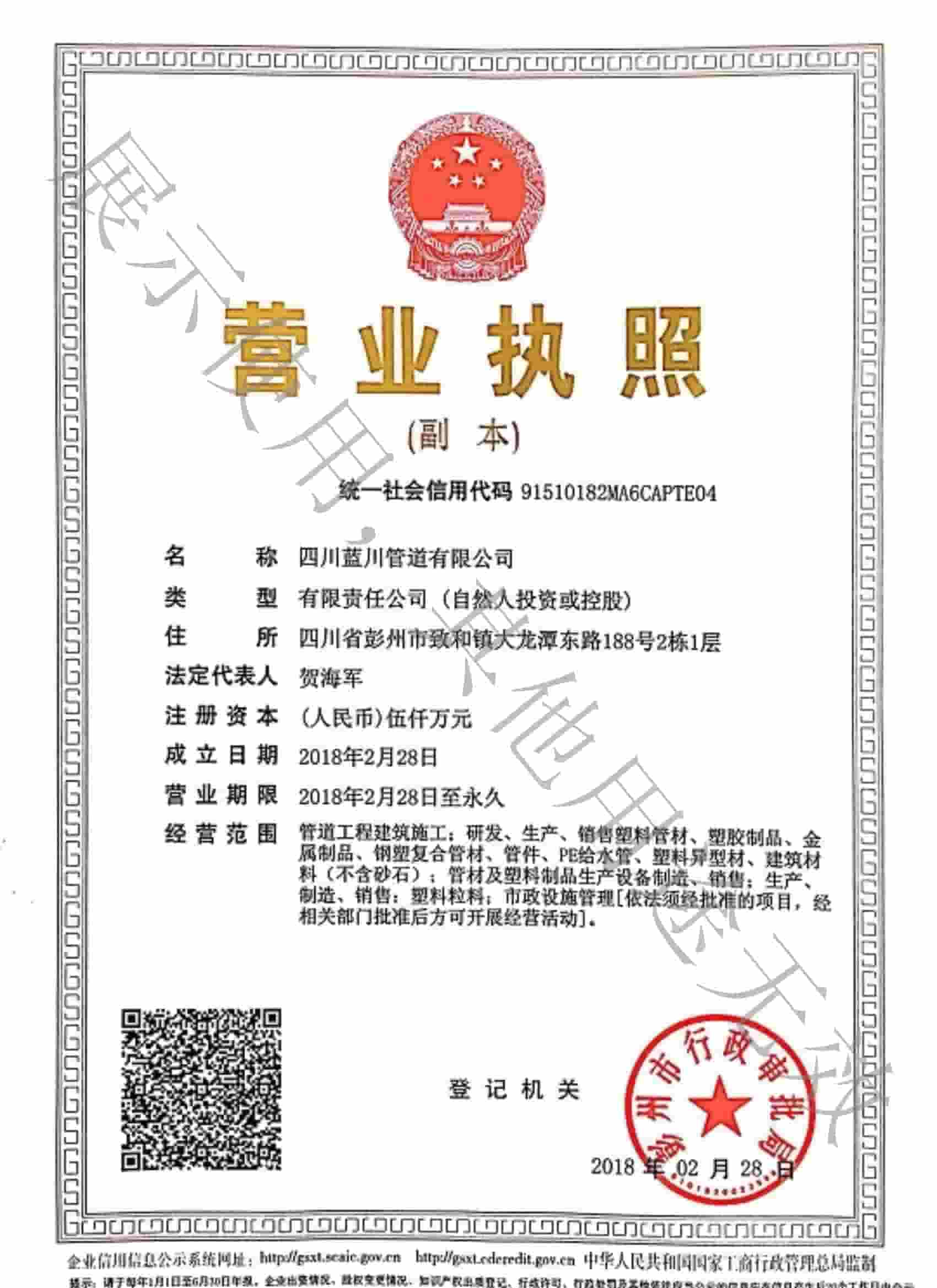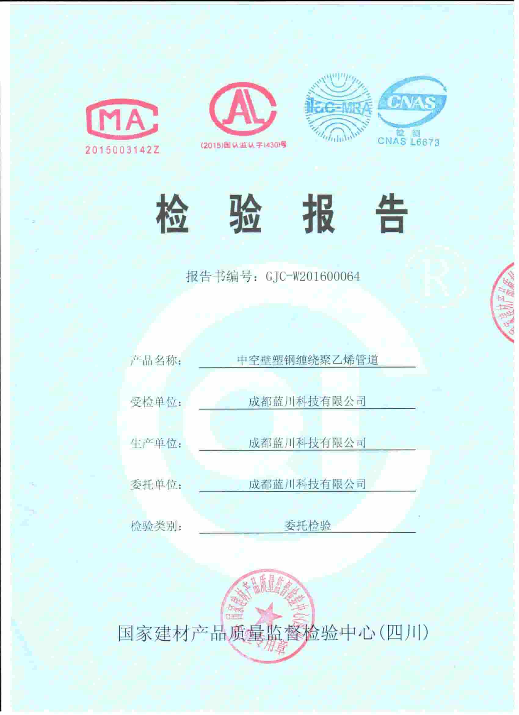 四川藍(lán)川管道有限公司(成都藍(lán)川科技有限公司)成立于2012年,生產(chǎn)基地坐落于“牡丹之城”四川彭州市工業(yè)開發(fā)區(qū),營運(yùn)中心位于成都市高新區(qū)益州大道,注冊(cè)資本5仟萬,占地面積2萬余平米,年生產(chǎn)能力達(dá)1萬噸以上;是一家專業(yè)研發(fā)、生產(chǎn)、銷售新型市政工程管道的高新技術(shù)企業(yè)。目前擁有大型市政排水管生產(chǎn)線5條,給水管生產(chǎn)線5條,電力管生產(chǎn)線2條。主要產(chǎn)品有:防脫層鍍鋅鋼骨架纏繞管、雙層壁克拉管、雙色中空壁塑鋼纏繞管、方形雙壁立筋纏繞管、內(nèi)肋管、雙壁波紋管、給水管、電力管、硅芯管等。 公司是四川省湖南商會(huì)“常務(wù)副會(huì)長單位”和“創(chuàng)新湘商”,中國塑料加工工業(yè)協(xié)會(huì)“塑料管道專業(yè)委員會(huì)會(huì)員單位”,獲得了30余項(xiàng)發(fā)明專利和實(shí)用新型專利,2020年評(píng)為《高新技術(shù)企業(yè)》,公司通過了《質(zhì)量管理體系認(rèn)證證書ISO9001:2015》,《職業(yè)健康安全管理體系認(rèn)證證書OHSAS18001:2018》,《環(huán)境管理體系認(rèn)證證書ISO14001:2015》;公司于2019年主編了《雙色防脫層玻璃纖維增強(qiáng)鍍鋅鋼骨架纏繞管》T/SCSX0906-2019,《雙壁纖維網(wǎng)鋼塑復(fù)合管》T/SCSX0916-2019,兩項(xiàng)團(tuán)體標(biāo)準(zhǔn),并獲得了四川建設(shè)科技發(fā)展中心頒發(fā)的《四川省建設(shè)領(lǐng)域科技成果或應(yīng)用技術(shù)備案證書》;公司“藍(lán)川”牌雙孔雙色共擠中空壁塑鋼纏繞聚乙烯管道、GSRC雙色雙層共擠玻纖增強(qiáng)防脫層鍍鋅鋼骨架纏繞管、方形雙壁立筋纏繞管、玻璃纖維增強(qiáng)內(nèi)肋硅芯層塑料電纜導(dǎo)管系列產(chǎn)品多次被中國企業(yè)發(fā)展促進(jìn)委員會(huì)、中國優(yōu)質(zhì)品牌統(tǒng)計(jì)中評(píng)定為“綠色環(huán)保推薦企業(yè)”、“工程建設(shè)推薦產(chǎn)品”、“質(zhì)量.服務(wù)誠信AAA企業(yè)”、“質(zhì)量檢驗(yàn).國家標(biāo)準(zhǔn)合格產(chǎn)品”、“中國自主創(chuàng)新產(chǎn)品”。